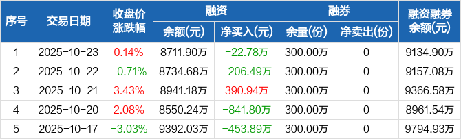 创业50ETF:融资净偿还22.78万元,融资余额8711.9万元(10-23)