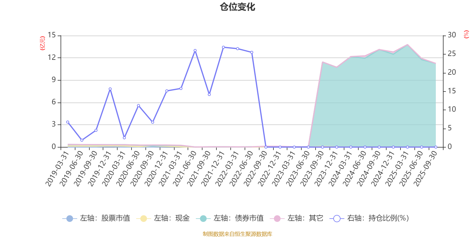 据定期报告数据统计,近三年平均股票仓位为0%,同类平均为19.33%。2021年末基金达到26.86%的最高仓位,2019年上半年末最低,为1.86%。
