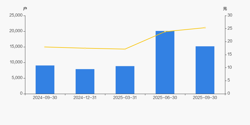2024年9月30日至今,公司股东户数显著大幅增长,区间涨幅达67.71%。2024年9月30日至2025年9月30日区间股价上涨41.20%。