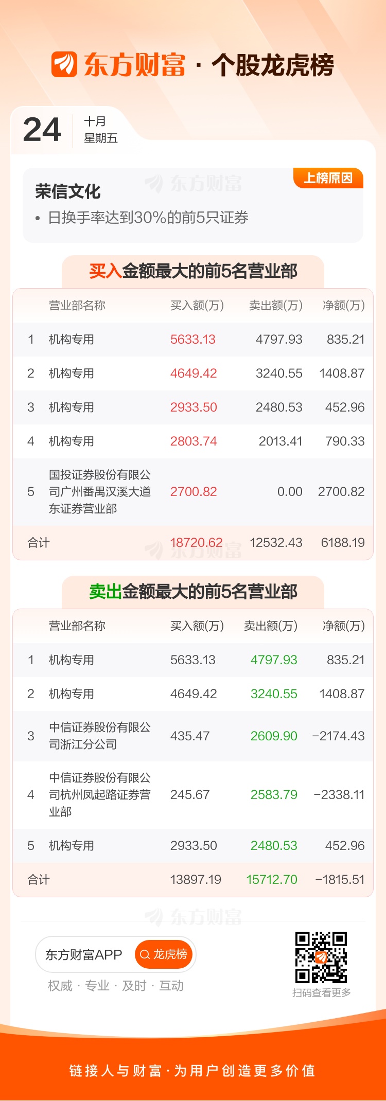 荣信文化(301231)龙虎榜数据(10-24)