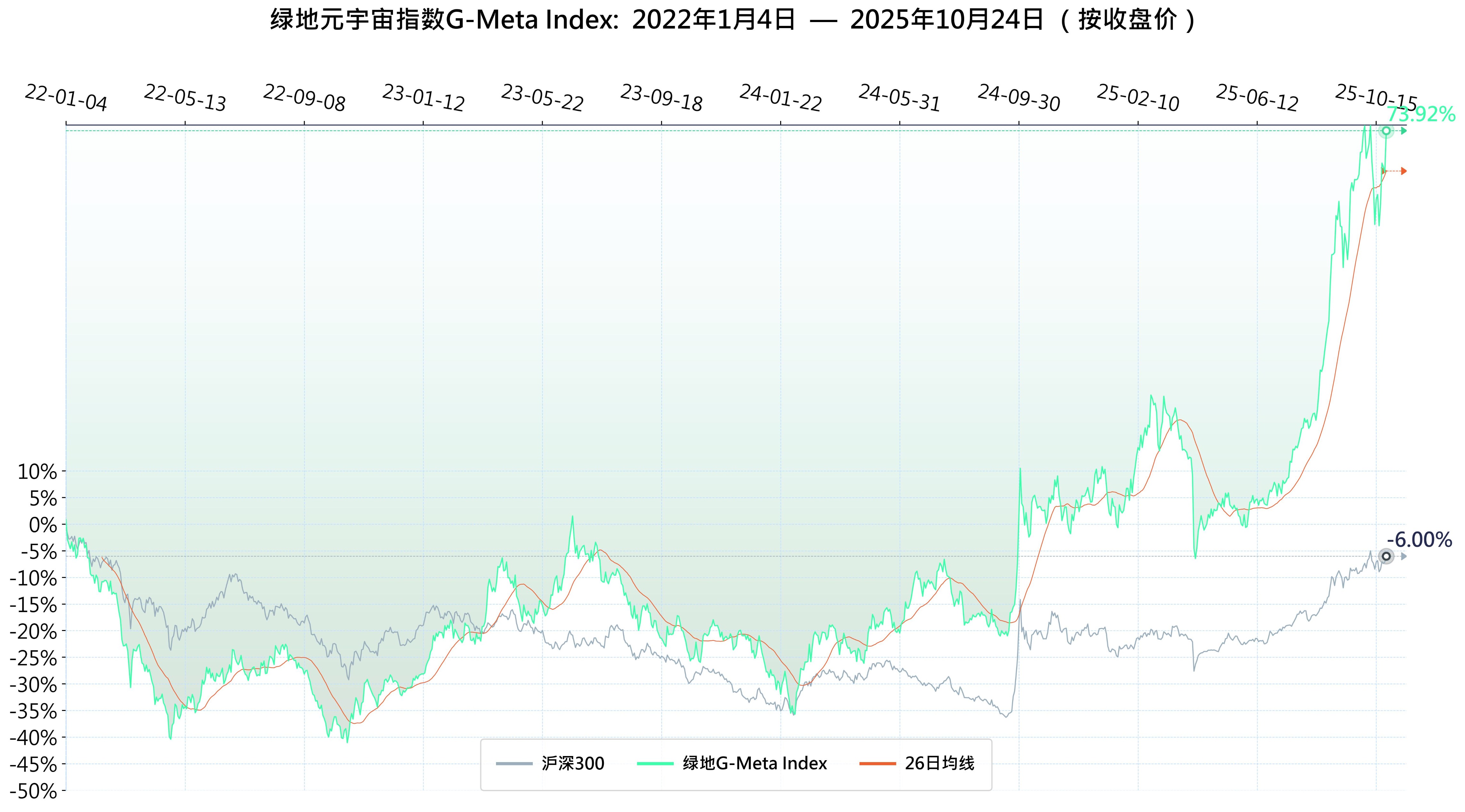 绿地元宇宙指数G-Meta Index由绿地数字经济产业研究院与复旦大学国际金融学院、申万宏源研究所、上海金融信息行业协会联合编制。