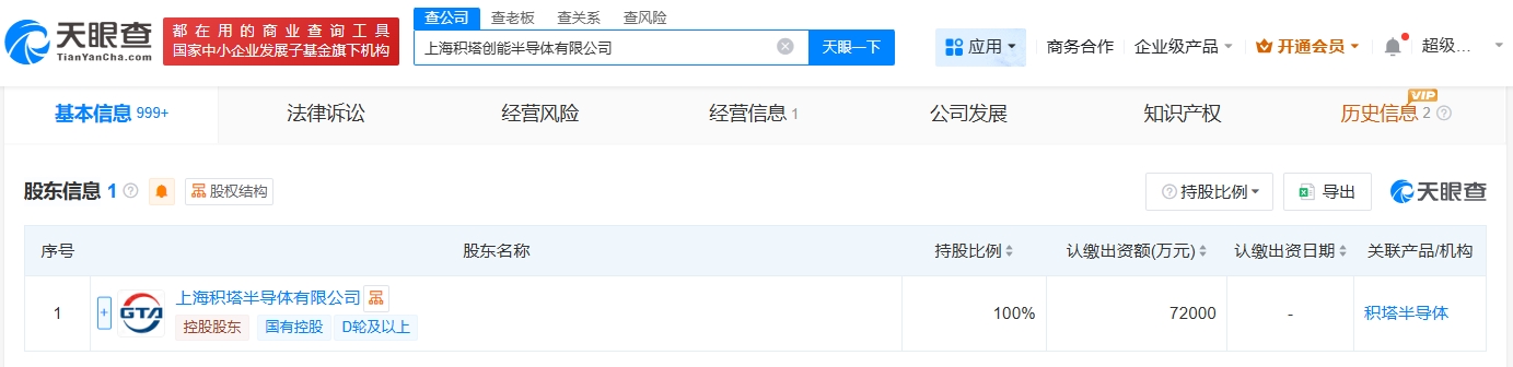 每经AI快讯,天眼查App显示,近日,上海积塔创能半导体有限公司成立,法定代表人为王辉,注册资本7.2亿元,经营范围包括半导体分立器件销售、电力电子元器件销售、电子元器件批发、电子元器件零售等,由上海积塔半导体有限公司全资持股。