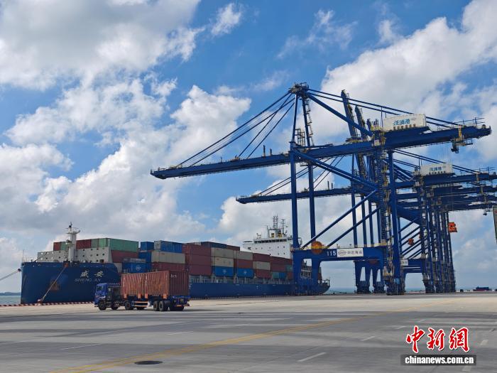 图为从印度尼西亚驶来的“盛安”轮停靠海南儋州洋浦港。中新网记者王子谦摄