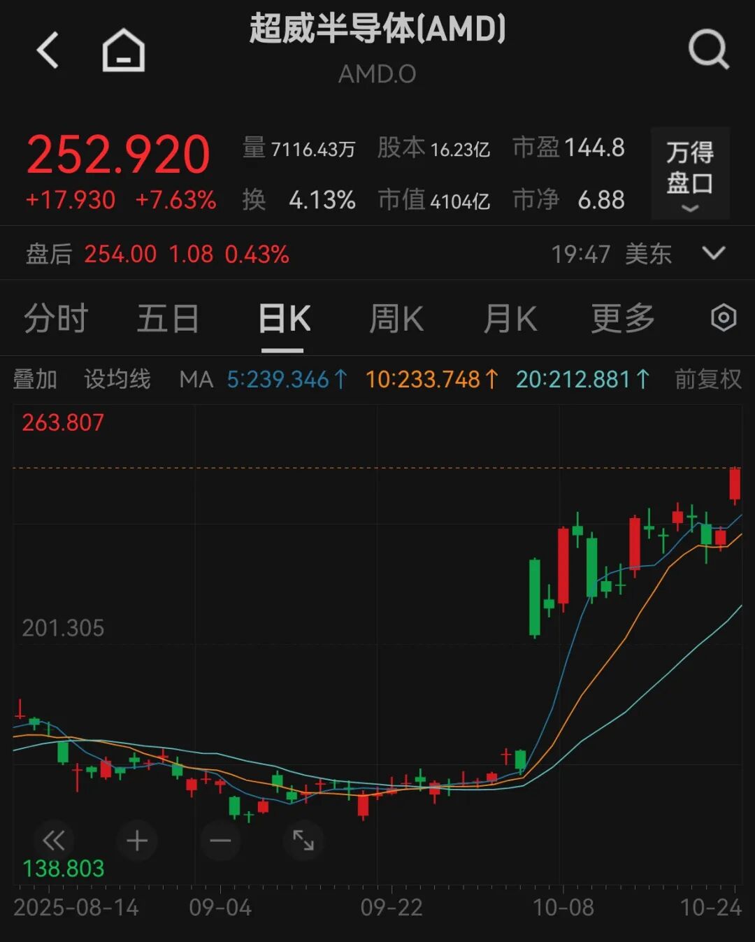 当地时间10月24日,欧美股市多数收涨,道指、纳指双双涨超1%,美股三大指数均创新高。中概股涨跌不一,纳斯达克中国金龙指数涨0.27%。大型科技股普涨,IBM和AMD均涨逾7%。