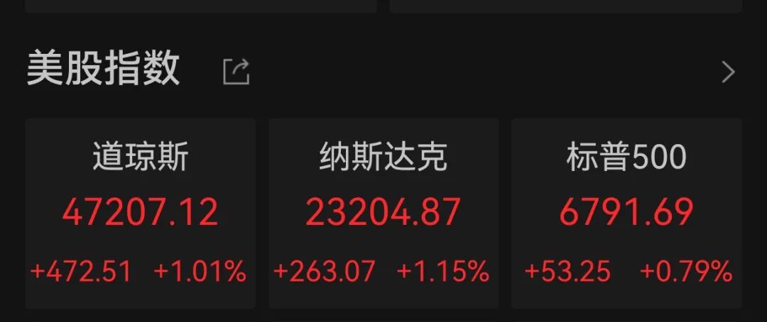 当地时间10月24日,美股三大指数全线收涨,Wind数据显示,道指涨1.01%报47207.12点,标普500指数涨0.79%报6791.69点,纳指涨1.15%报23204.87点,均创历史新高。本周,道指涨2.2%,标普500指数涨1.92%,纳指涨2.31%。