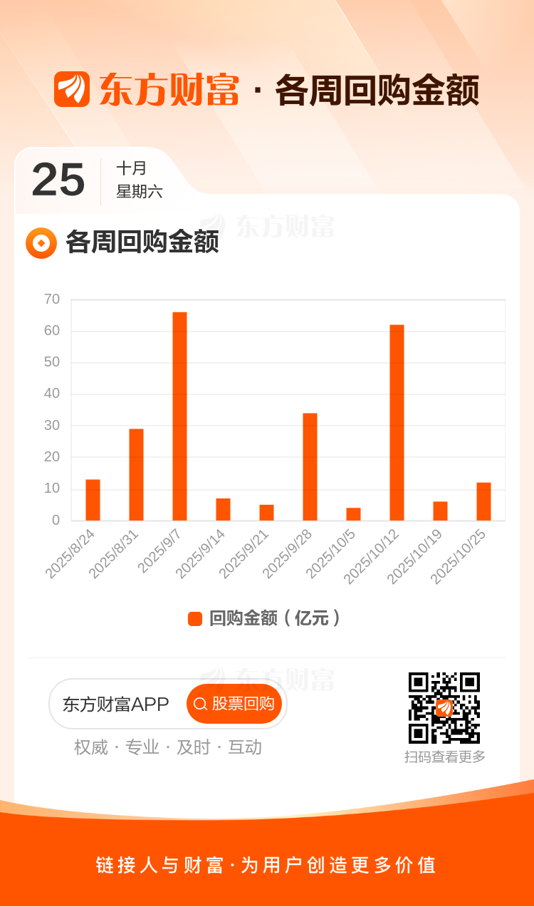 东方财富Choice数据显示,截至10月25日,本周有20家A股公司披露回购实施情况,合计回购金额12.37亿元,高于上周的6.20亿元。