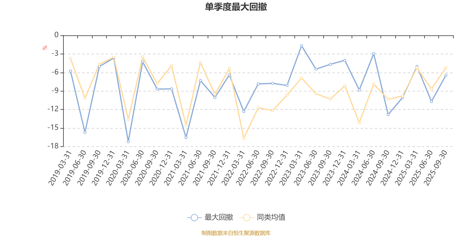 截至10月23日,基金近三年最大回撤为18.57%,同类可比基金排名250/1273。单季度最大回撤出现在2020年一季度,为17.23%。