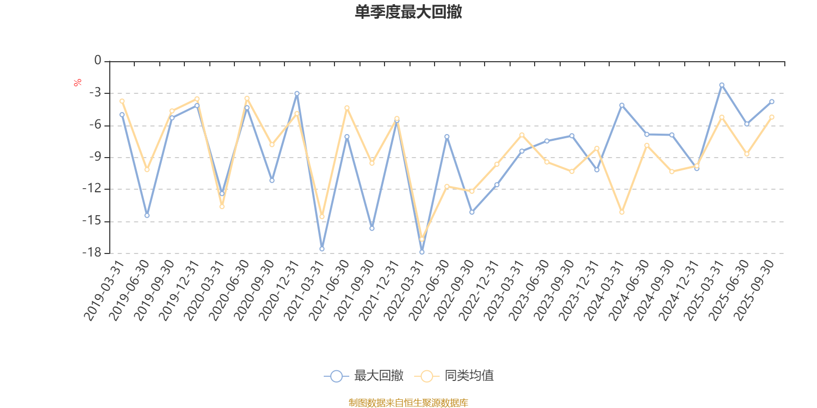截至10月24日,基金近三年最大回撤为18.7%,同类可比基金排名256/1283。单季度最大回撤出现在2022年一季度,为17.89%。
