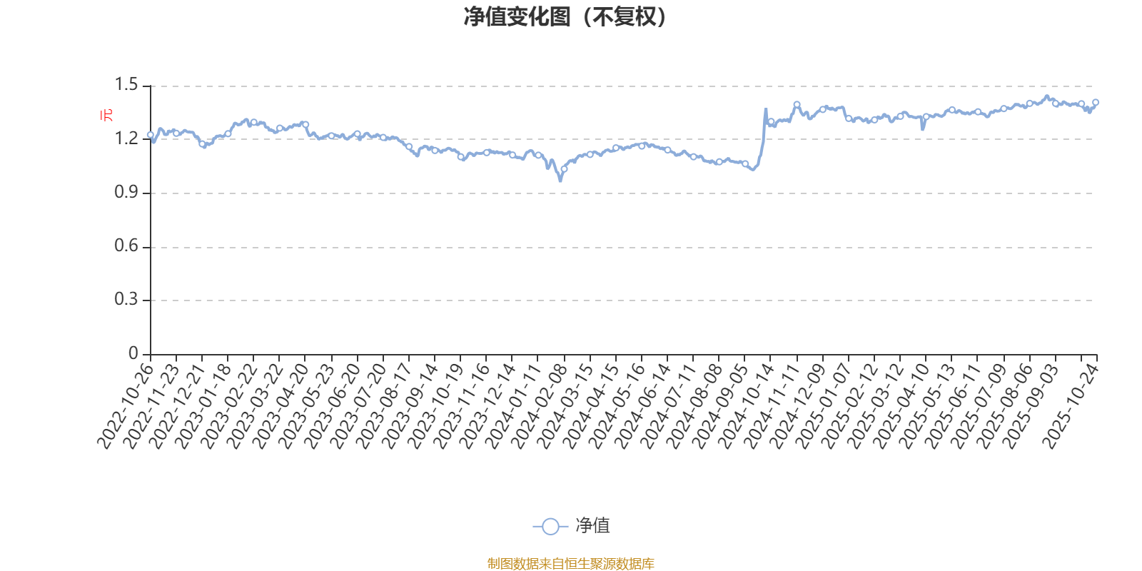 该基金属于标准股票型基金。截至10月24日,单位净值为1.407元。基金经理是叶乐天和赵荣杰。