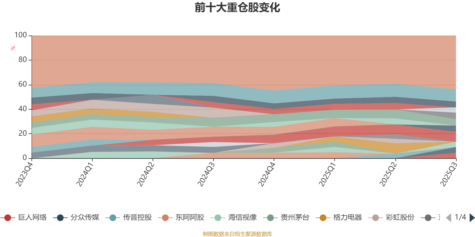 该基金持股集中度较高。截至2025年三季度末,基金十大重仓股分别是京东方A、TCL科技、中国人寿、恺英网络、寒武纪、中国太保、分众传媒、海信视像、汇嘉时代、巨人网络。