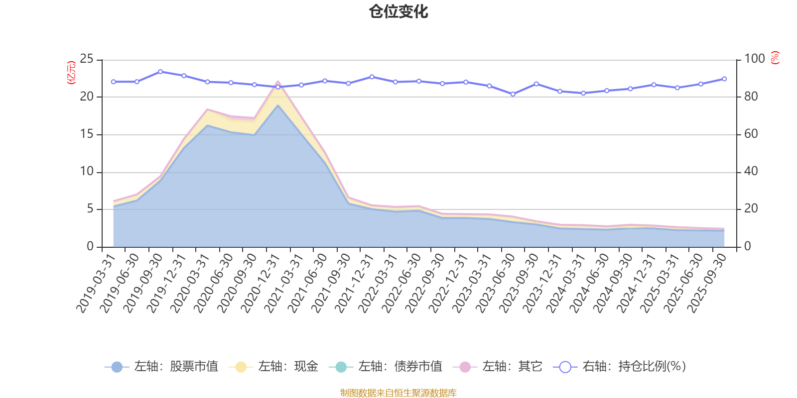 据定期报告数据统计,近三年平均股票仓位为85.37%,同类平均为88.21%。2019年三季度末基金达到93.61%的最高仓位,2023年上半年末最低,为81.64%。