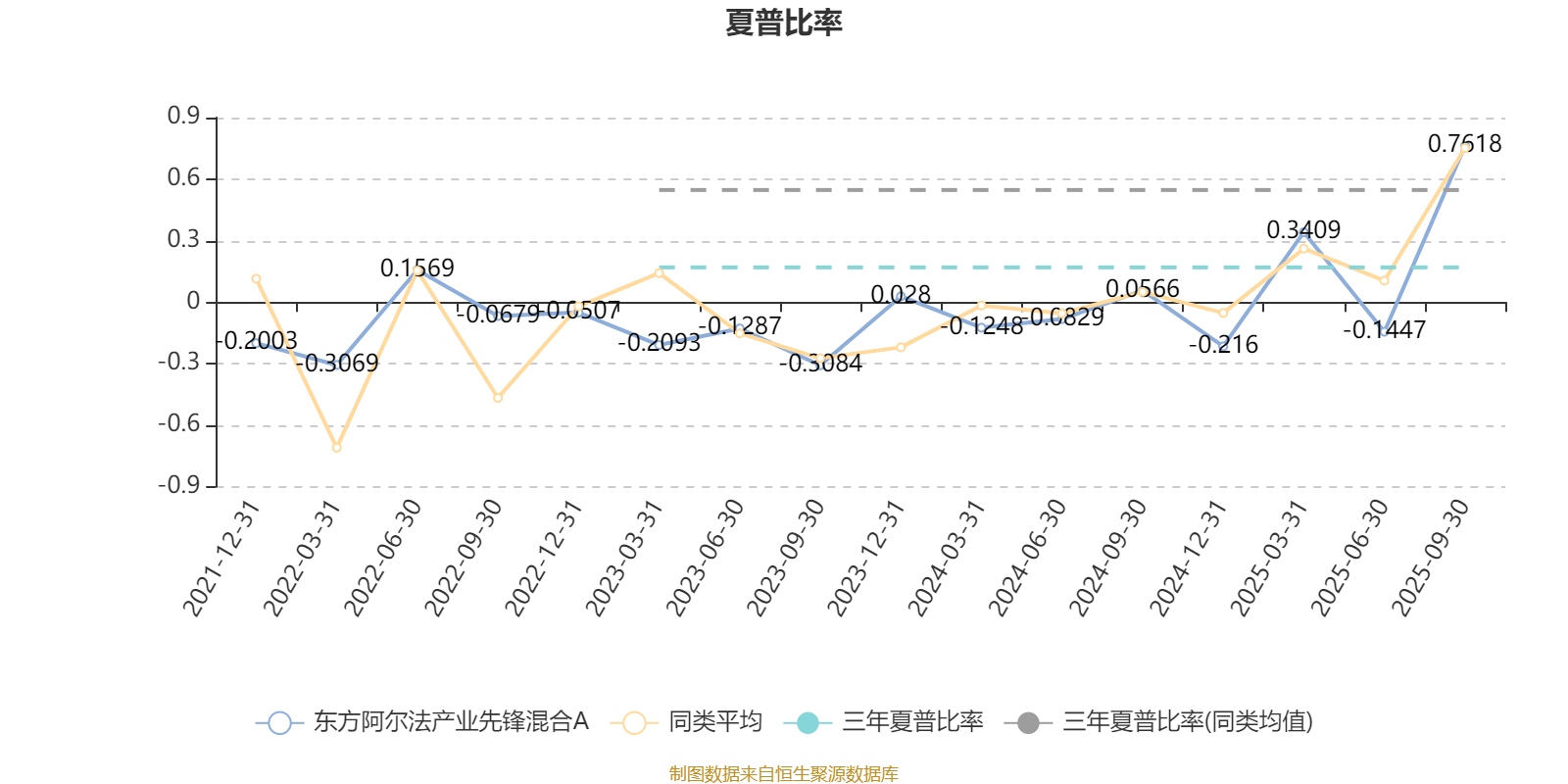 截至9月30日,基金近三年夏普比率为0.1693,位于同类可比基金226/252。