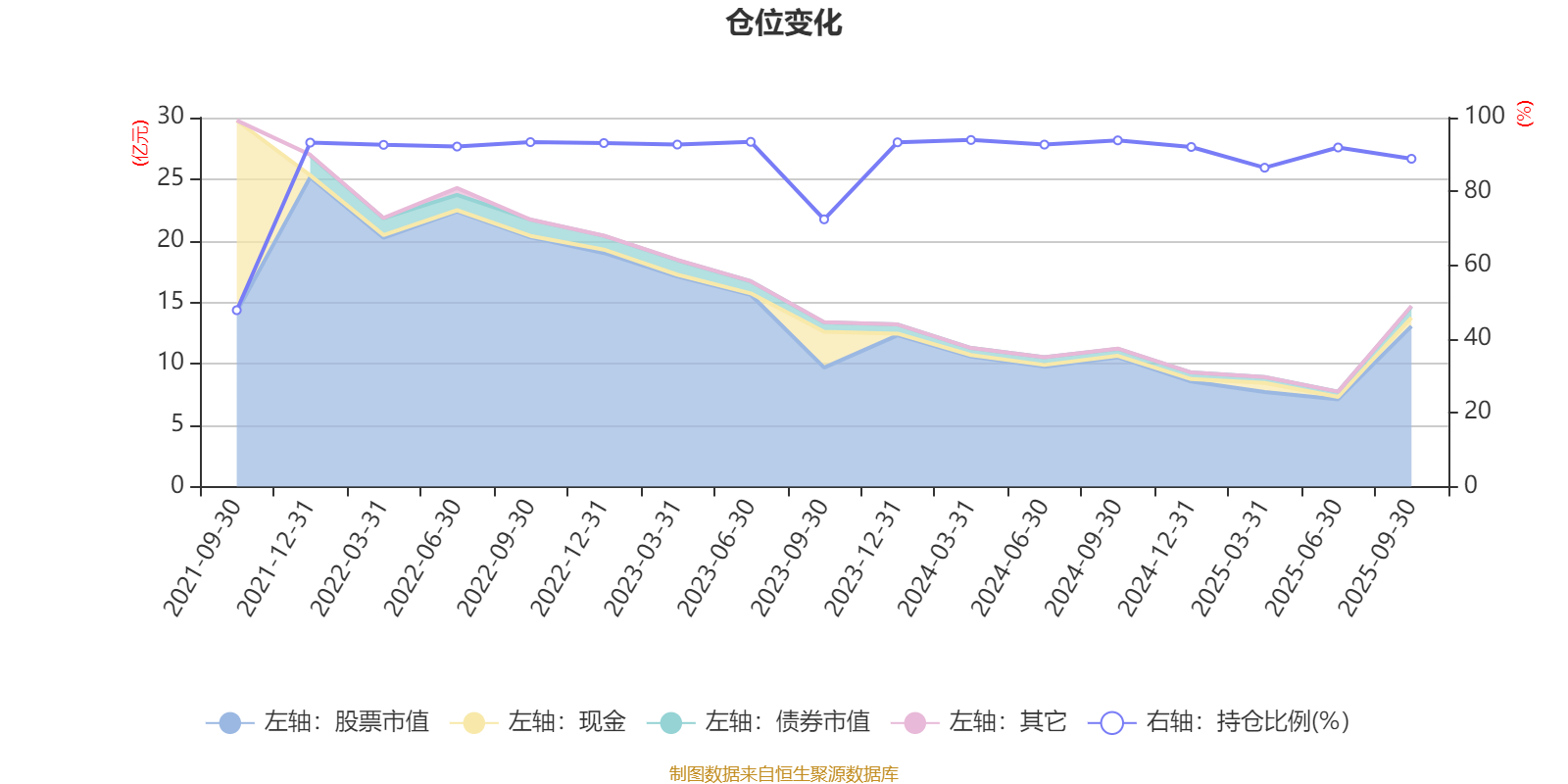 据定期报告数据统计,近三年平均股票仓位为90.38%,同类平均为85.84%。2024年一季度末基金达到93.93%的最高仓位,2021年三季度末最低,为47.8%。