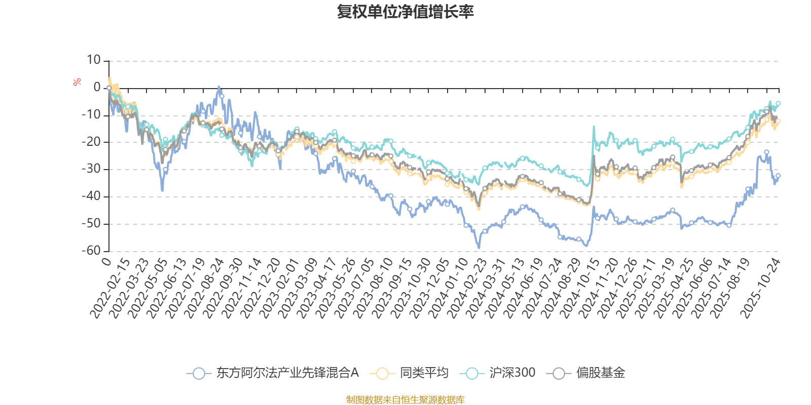 截至10月24日,东方阿尔法产业先锋混合A近三个月复权单位净值增长率为25.08%,位于同类可比基金49/265;近半年复权单位净值增长率为35.73%,位于同类可比基金77/265;近一年复权单位净值增长率为28.03%,位于同类可比基金125/265;近三年复权单位净值增长率为-19.26%,位于同类可比基金245/253。