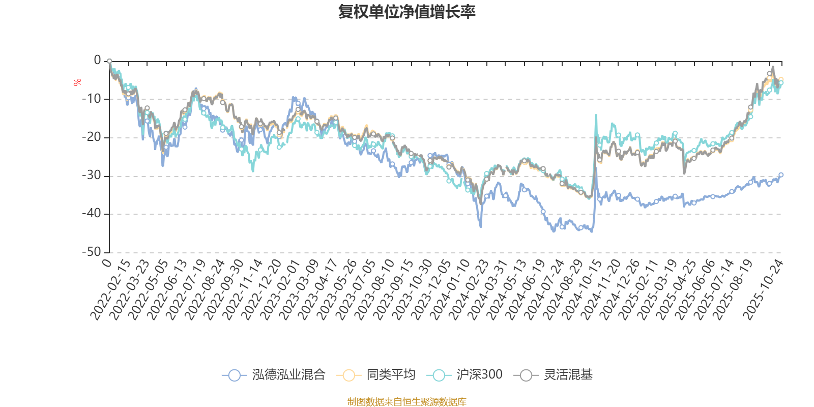 截至10月24日,泓德泓业混合近三个月复权单位净值增长率为4.33%,位于同类可比基金941/1287;近半年复权单位净值增长率为11.02%,位于同类可比基金988/1287;近一年复权单位净值增长率为9.52%,位于同类可比基金970/1287;近三年复权单位净值增长率为-10.80%,位于同类可比基金1138/1286。