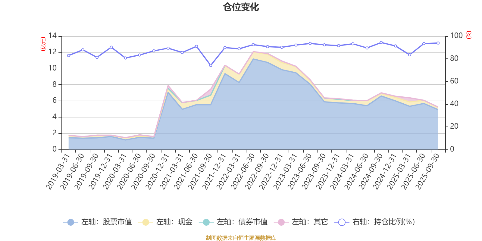 据定期报告数据统计,近三年平均股票仓位为91.62%,同类平均为88.21%。2024年三季度末基金达到94.39%的最高仓位,2021年三季度末最低,为74.17%。