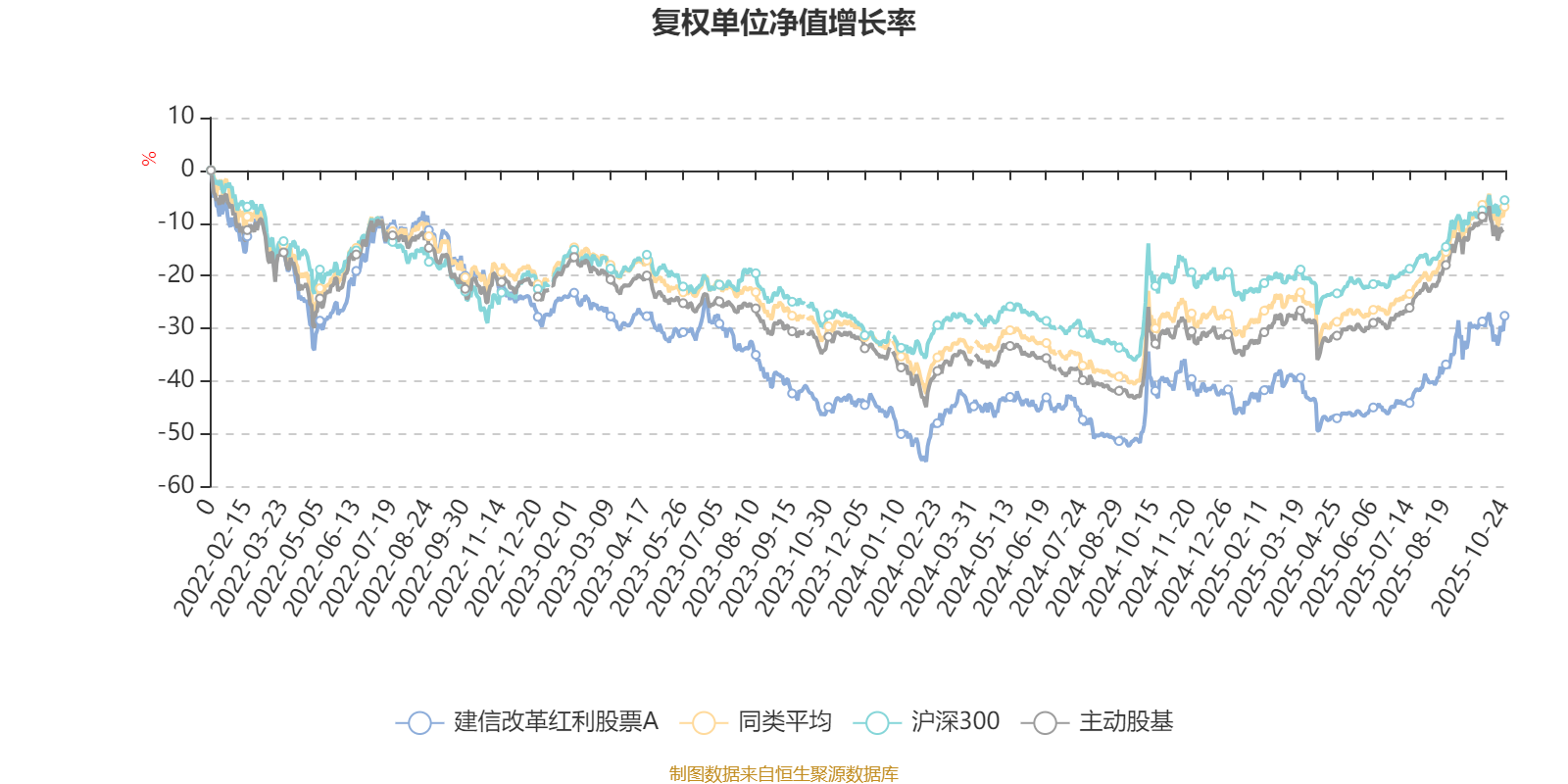 截至10月24日,建信改革红利股票A近三个月复权单位净值增长率为23.44%,位于同类可比基金40/167;近半年复权单位净值增长率为35.71%,位于同类可比基金50/166;近一年复权单位净值增长率为21.13%,位于同类可比基金114/164;近三年复权单位净值增长率为-8.91%,位于同类可比基金139/156。
