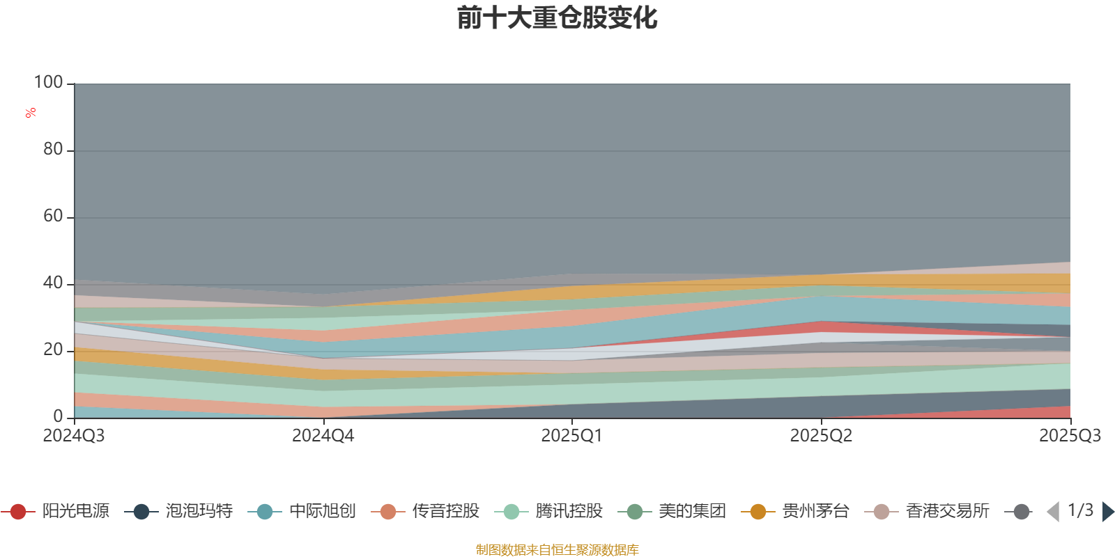 截至2025年三季度末,基金十大重仓股分别是腾讯控股、阿里巴巴-W、小米集团-W、泡泡玛特、寒武纪、中芯国际、海光信息、香港交易所、阳光电源、工业富联。