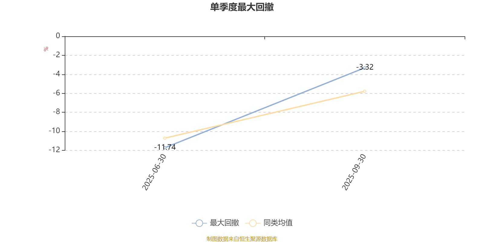 通过所选区间该基金净值增长率分位图,可以观察该基金与同类基金业绩比较情况。图为坐标原点到区间内某时点的净值增长率在同类基金中的分位数。