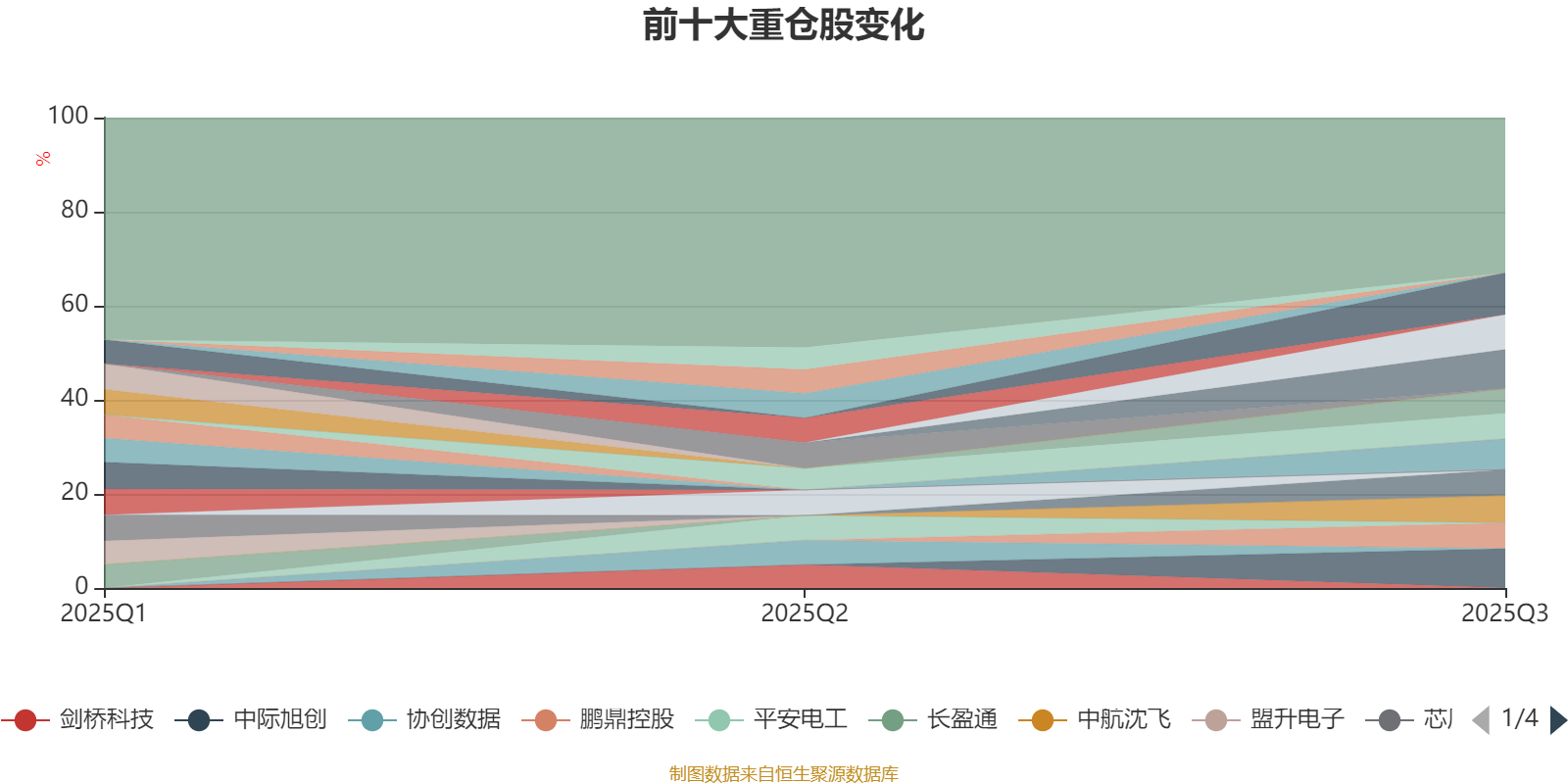 该基金持股集中度较高。截至2025年三季度末,基金十大重仓股分别是新易盛、中际旭创、天孚通信、华虹半导体、海光信息、中航沈飞、生益科技、鹏鼎控股、沪电股份、胜宏科技。