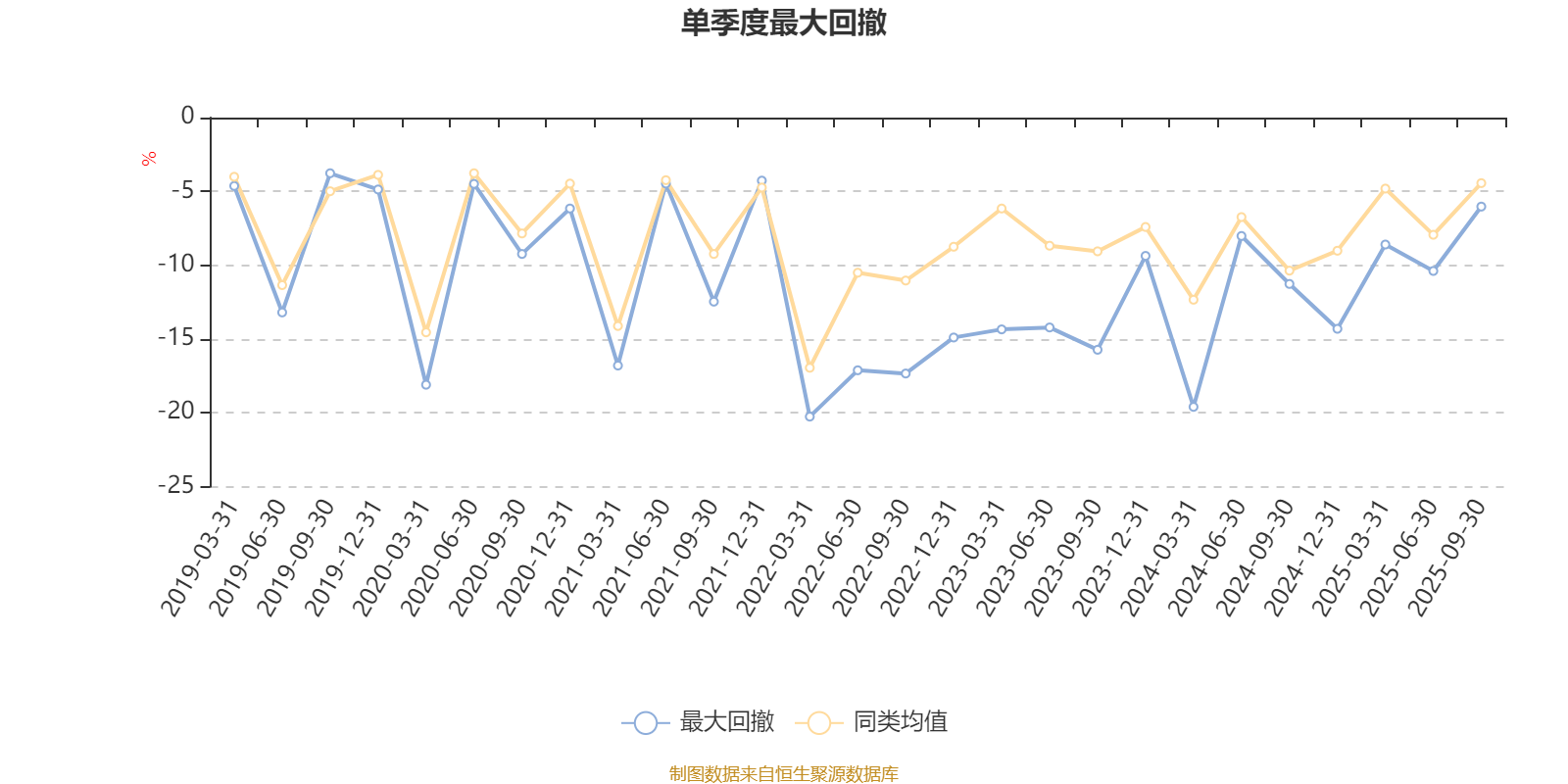 通过所选区间该基金净值增长率分位图,可以观察该基金与同类基金业绩比较情况。图为坐标原点到区间内某时点的净值增长率在同类基金中的分位数。