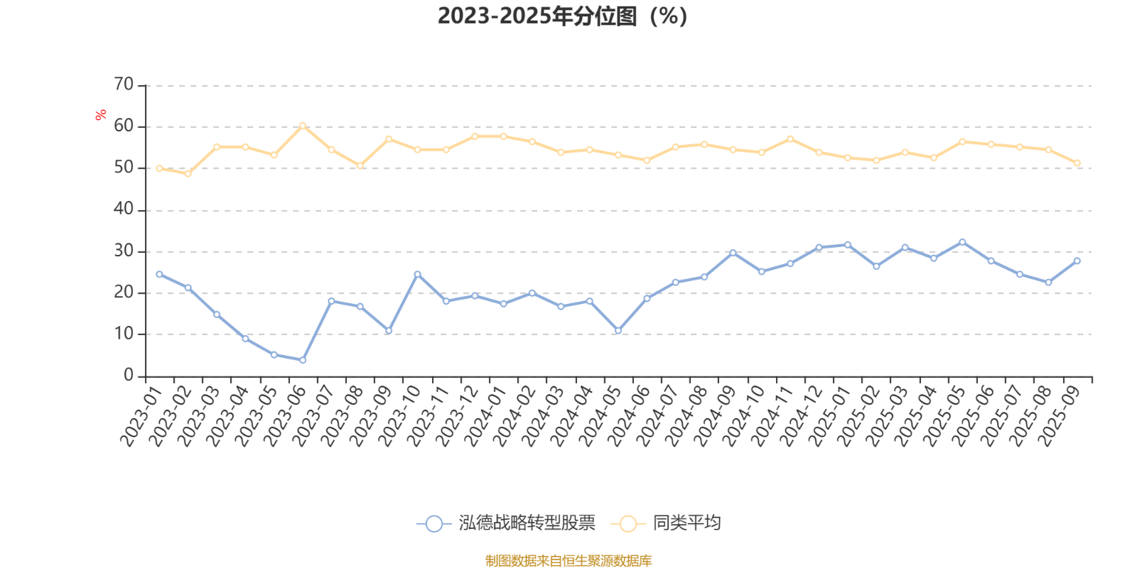通过所选区间该基金净值增长率分位图,可以观察该基金与同类基金业绩比较情况。图为坐标原点到区间内某时点的净值增长率在同类基金中的分位数。