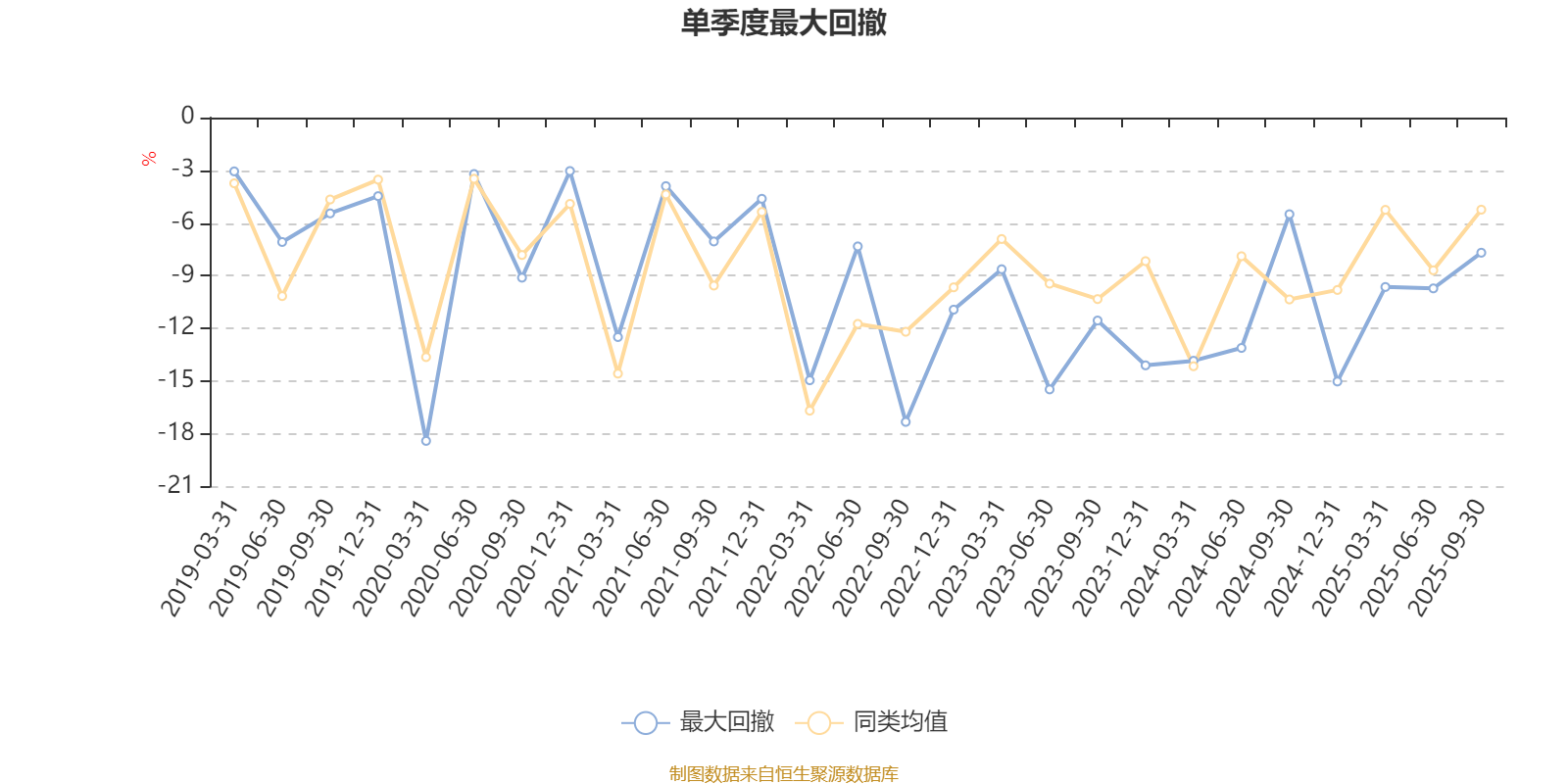 截至10月24日,基金近三年最大回撤为44.55%,同类可比基金排名1057/1283。单季度最大回撤出现在2020年一季度,为18.4%。