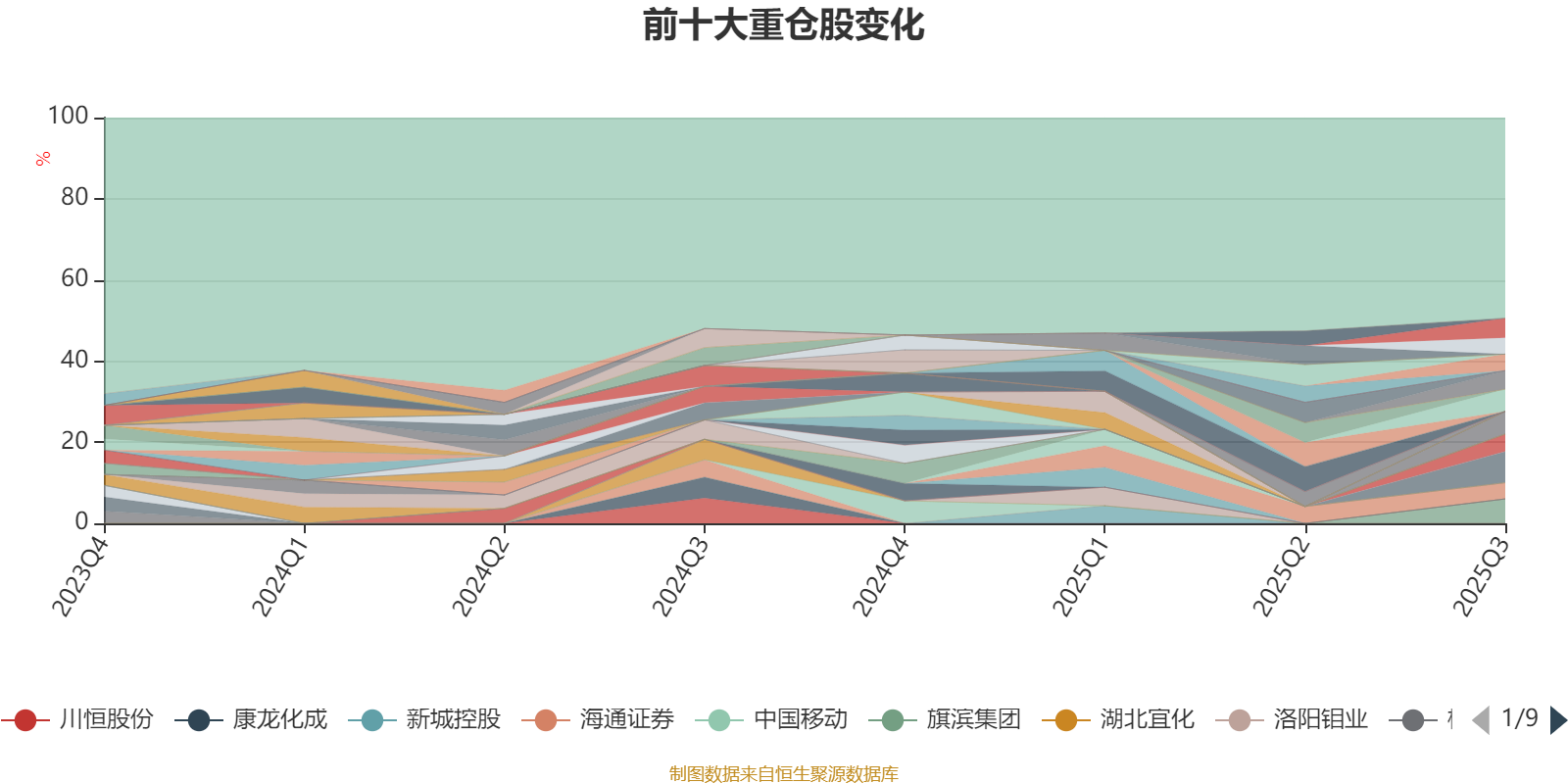 截至2025年三季度末,基金十大重仓股分别是阿特斯、旗滨集团、德业股份、中联重科、恒力石化、隆基绿能、通威股份、潞安环能、锦江酒店、中国国航。