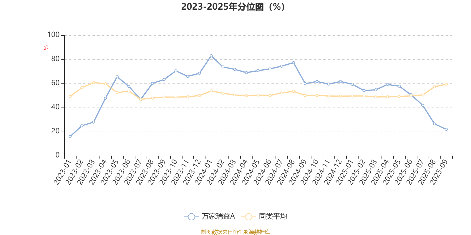 通过所选区间该基金净值增长率分位图,可以观察该基金与同类基金业绩比较情况。图为坐标原点到区间内某时点的净值增长率在同类基金中的分位数。