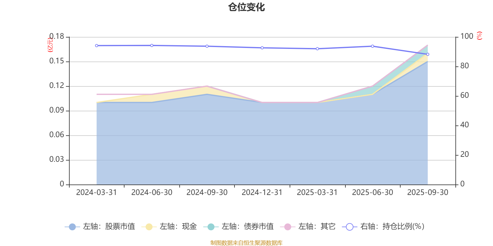 据定期报告数据统计,成立以来平均股票仓位为92.64%,同类平均为88.12%。2024年上半年末基金达到94.21%的最高仓位,2025年三季度末最低,为88.2%。