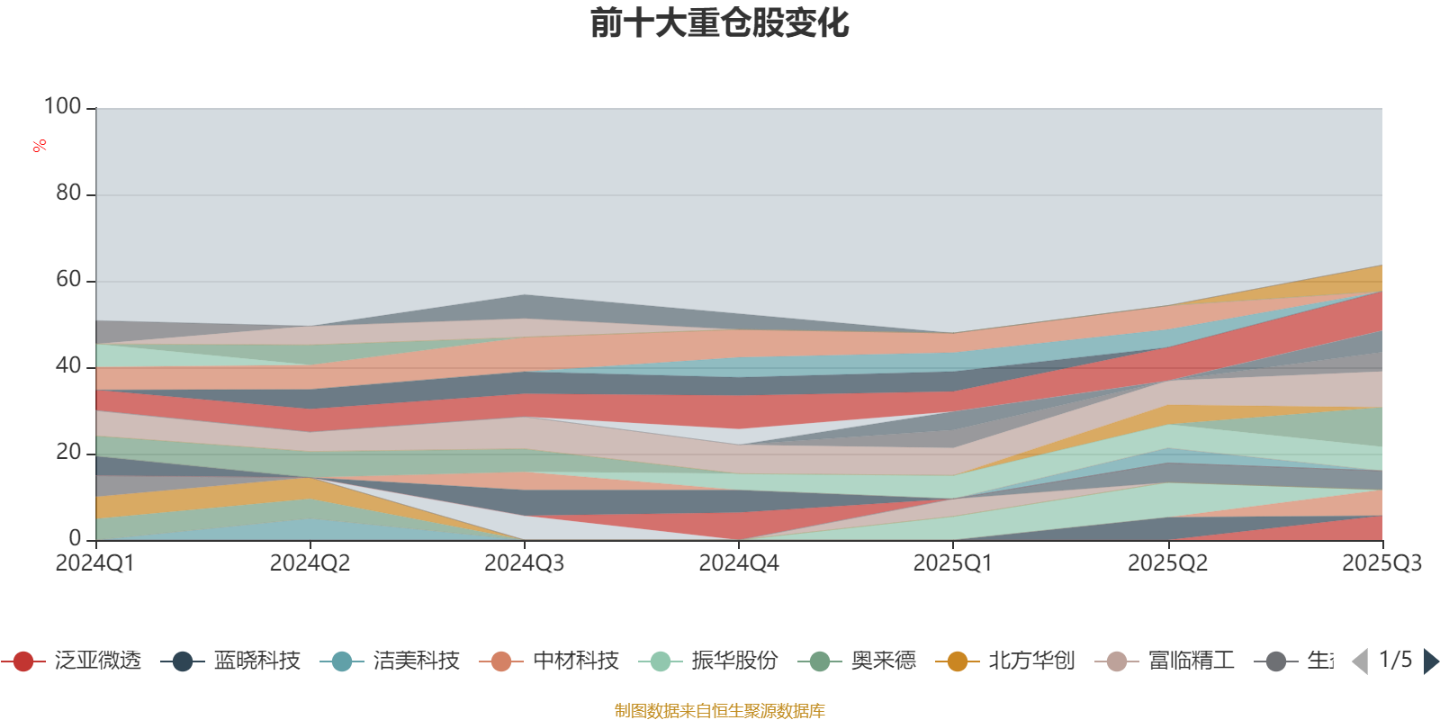 截至2025年三季度末,基金十大重仓股分别是雅克科技、联瑞新材、万润股份、华友钴业、中材科技、泛亚微透、圣泉集团、中芯国际、海光信息、厦钨新能。
