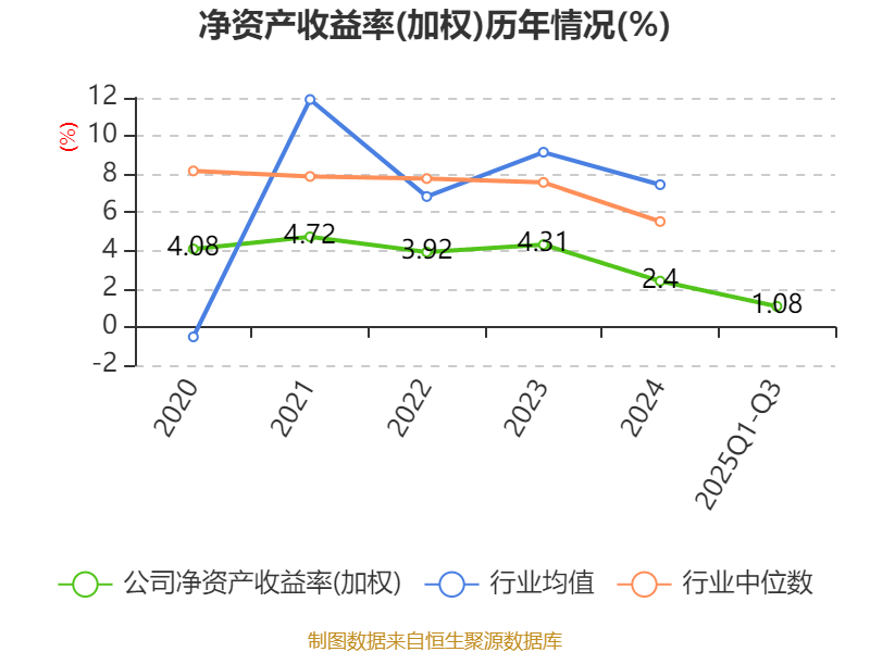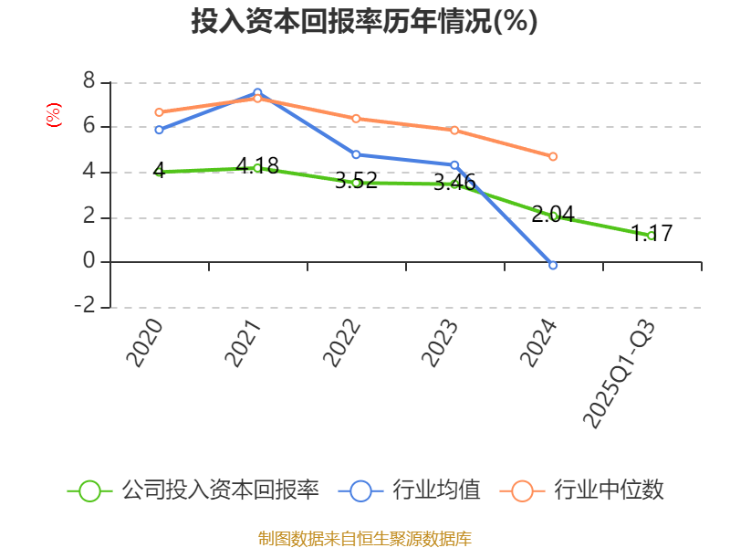 盈利能力方面, 2025年前三季度公司加权平均净资产收益率为1.08%,同比下降0.51个百分点。公司2025年前三季度投入资本回报率为1.17%,较上年同期下降0.15个百分点。