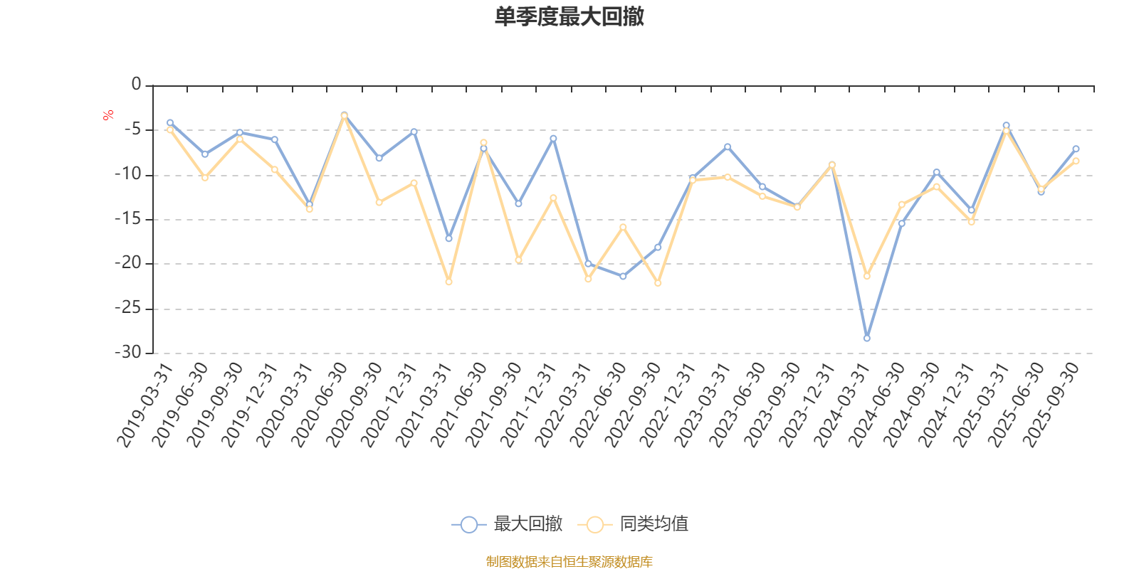 截至10月24日,基金近三年最大回撤为43.12%,同类可比基金排名34/48。单季度最大回撤出现在2024年一季度,为28.33%。