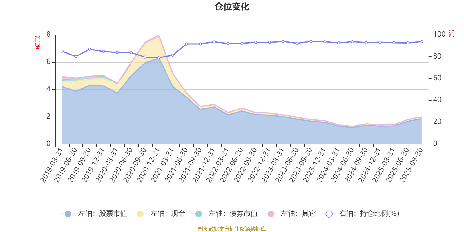 据定期报告数据统计,近三年平均股票仓位为93.18%,同类平均为88.22%。2023年三季度末基金达到93.97%的最高仓位,2020年末最低,为78.99%。