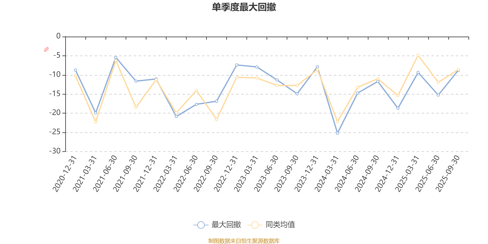 通过所选区间该基金净值增长率分位图,可以观察该基金与同类基金业绩比较情况。图为坐标原点到区间内某时点的净值增长率在同类基金中的分位数。