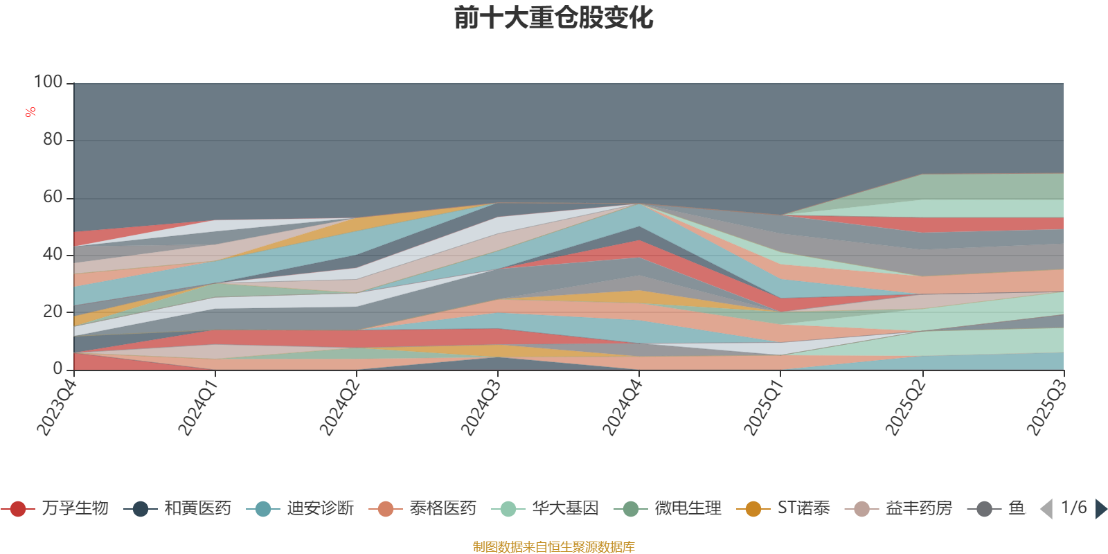 截至2025年三季度末,基金十大重仓股分别是润达医疗、医脉通、华大基因、美年健康、晶泰控股、讯飞医疗科技、迪安诊断、固生堂、医渡科技、卫宁健康。
