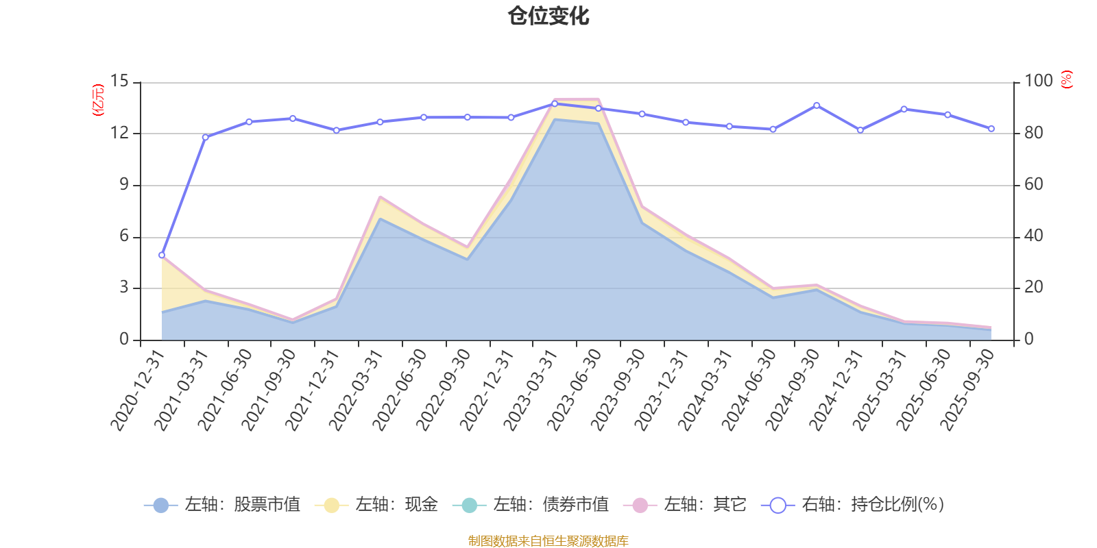 据定期报告数据统计,近三年平均股票仓位为86.33%,同类平均为86.76%。2023年一季度末基金达到91.67%的最高仓位,2020年末最低,为32.96%。