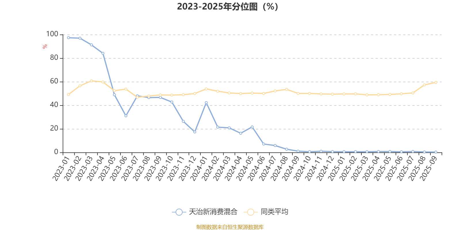 通过所选区间该基金净值增长率分位图,可以观察该基金与同类基金业绩比较情况。图为坐标原点到区间内某时点的净值增长率在同类基金中的分位数。