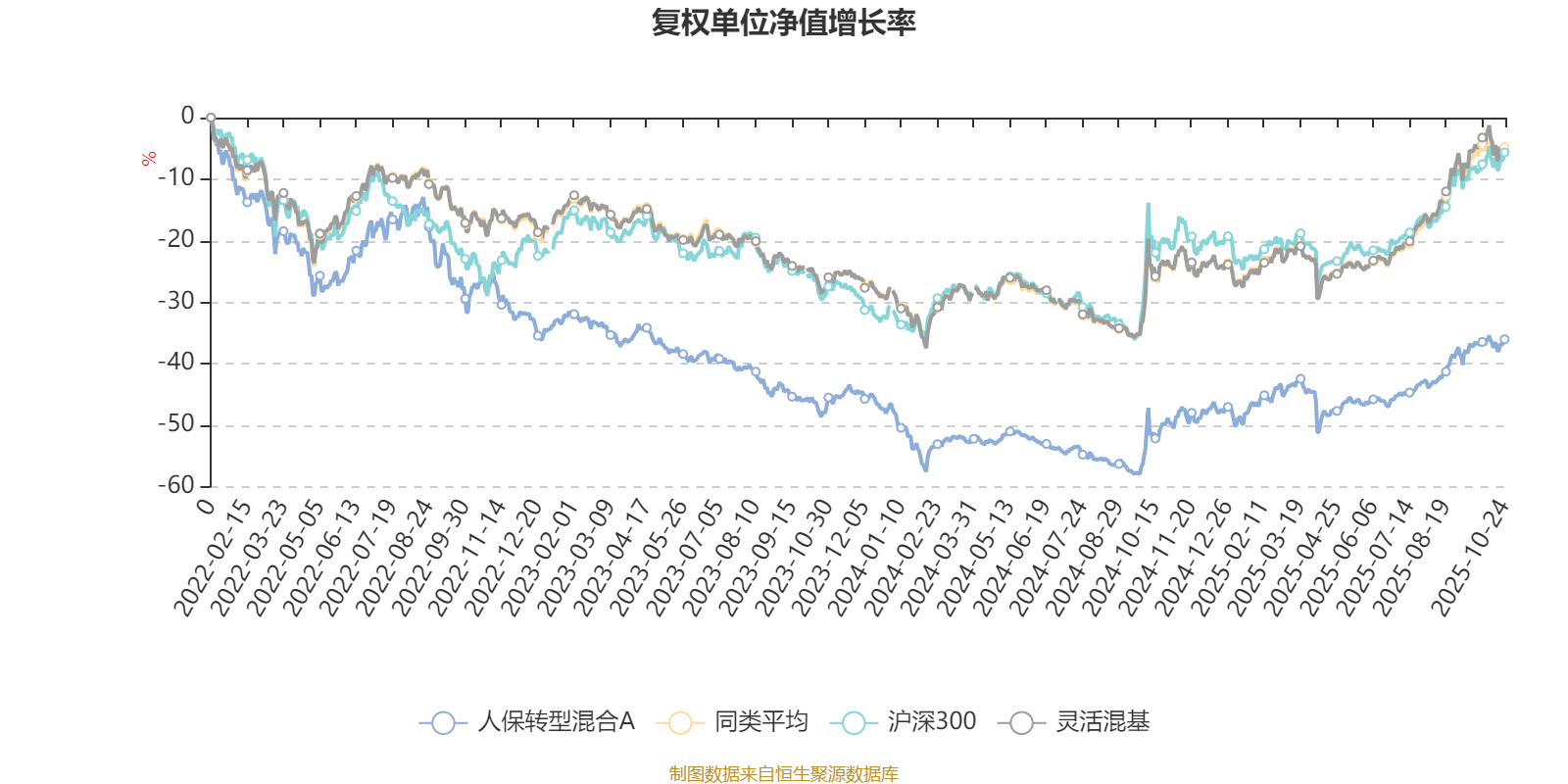 截至10月24日,人保转型混合A近三个月复权单位净值增长率为12.46%,位于同类可比基金581/1287;近半年复权单位净值增长率为22.37%,位于同类可比基金650/1287;近一年复权单位净值增长率为27.77%,位于同类可比基金486/1287;近三年复权单位净值增长率为-12.72%,位于同类可比基金1160/1286。