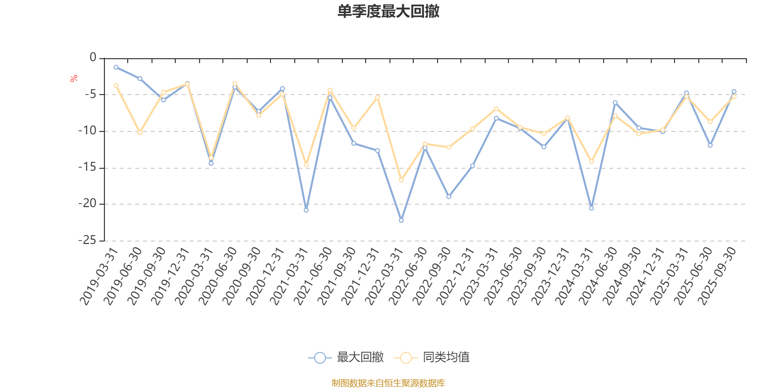 通过所选区间该基金净值增长率分位图,可以观察该基金与同类基金业绩比较情况。图为坐标原点到区间内某时点的净值增长率在同类基金中的分位数。