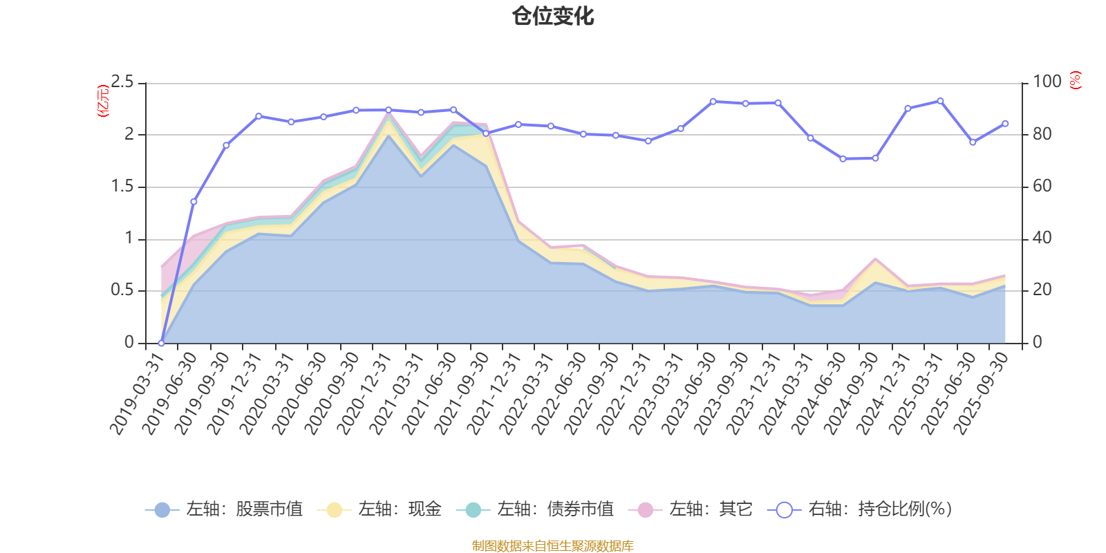 据定期报告数据统计,近三年平均股票仓位为83.6%,同类平均为72.18%。2025年一季度末基金达到93.1%的最高仓位,2019年一季度末最低,为0%。