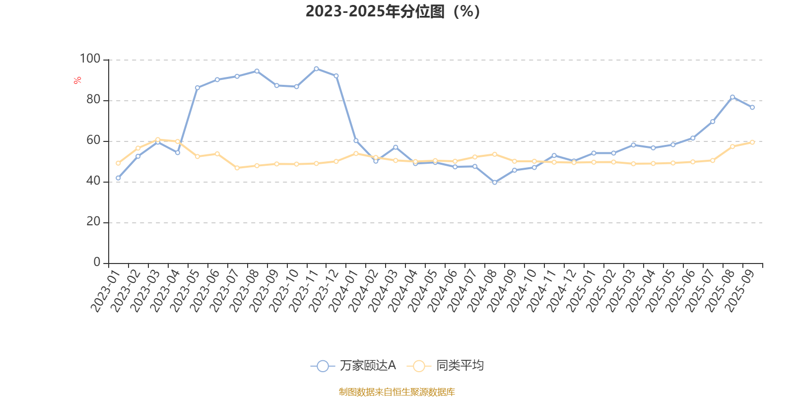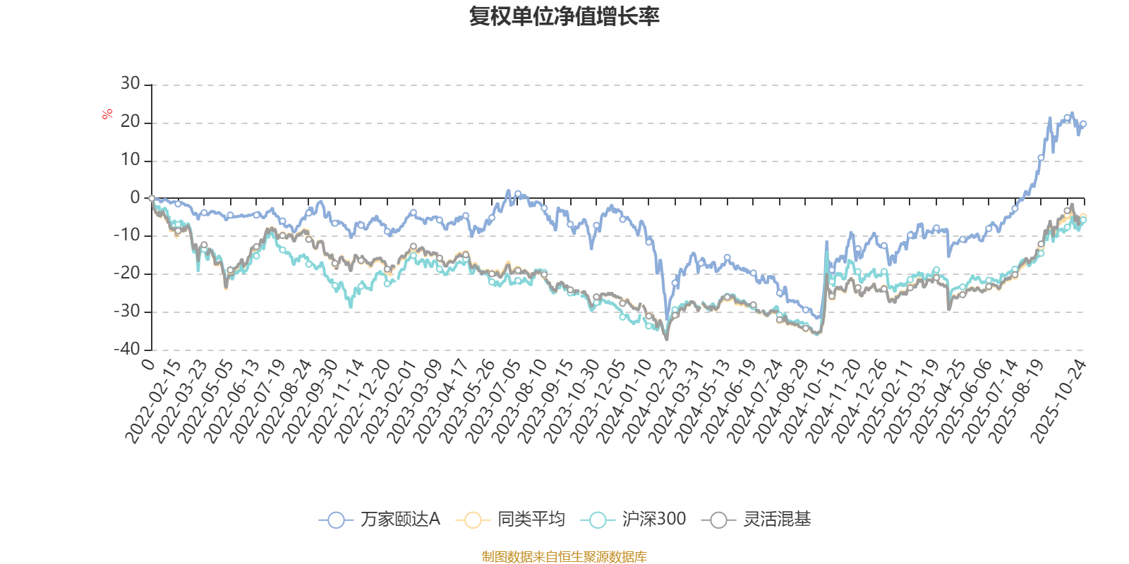 截至10月24日,万家颐达A近三个月复权单位净值增长率为19.77%,位于同类可比基金365/1287;近半年复权单位净值增长率为34.24%,位于同类可比基金360/1287;近一年复权单位净值增长率为43.82%,位于同类可比基金211/1287;近三年复权单位净值增长率为29.90%,位于同类可比基金316/1286。