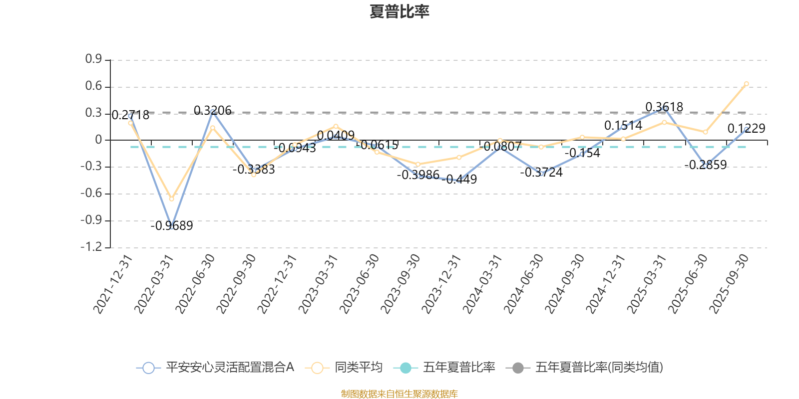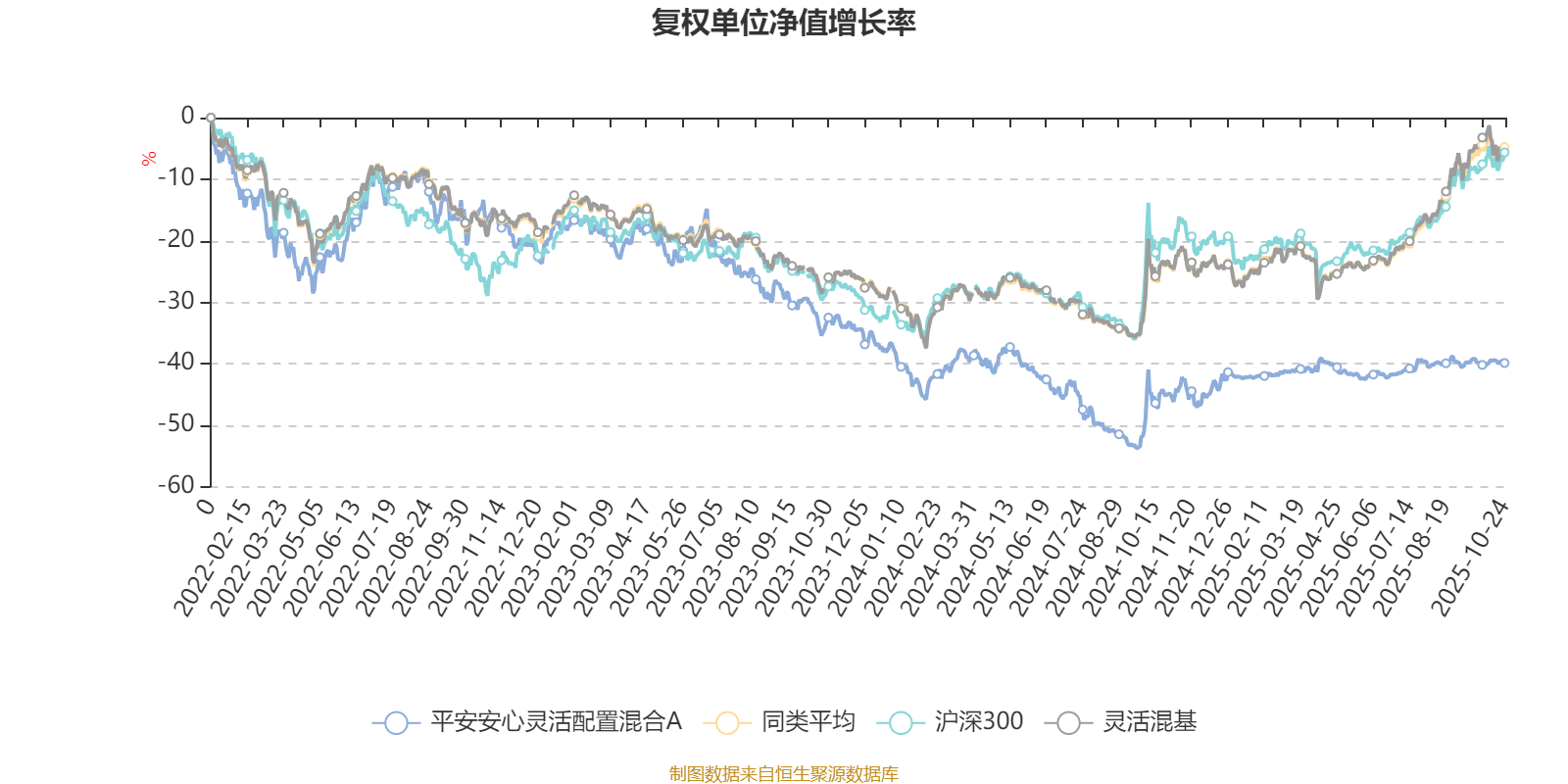 截至10月24日,平安安心灵活配置混合A近三个月复权单位净值增长率为-0.97%,位于同类可比基金1229/1287;近半年复权单位净值增长率为0.89%,位于同类可比基金1266/1287;近一年复权单位净值增长率为9.74%,位于同类可比基金963/1287;近三年复权单位净值增长率为-29.47%,位于同类可比基金1255/1286。