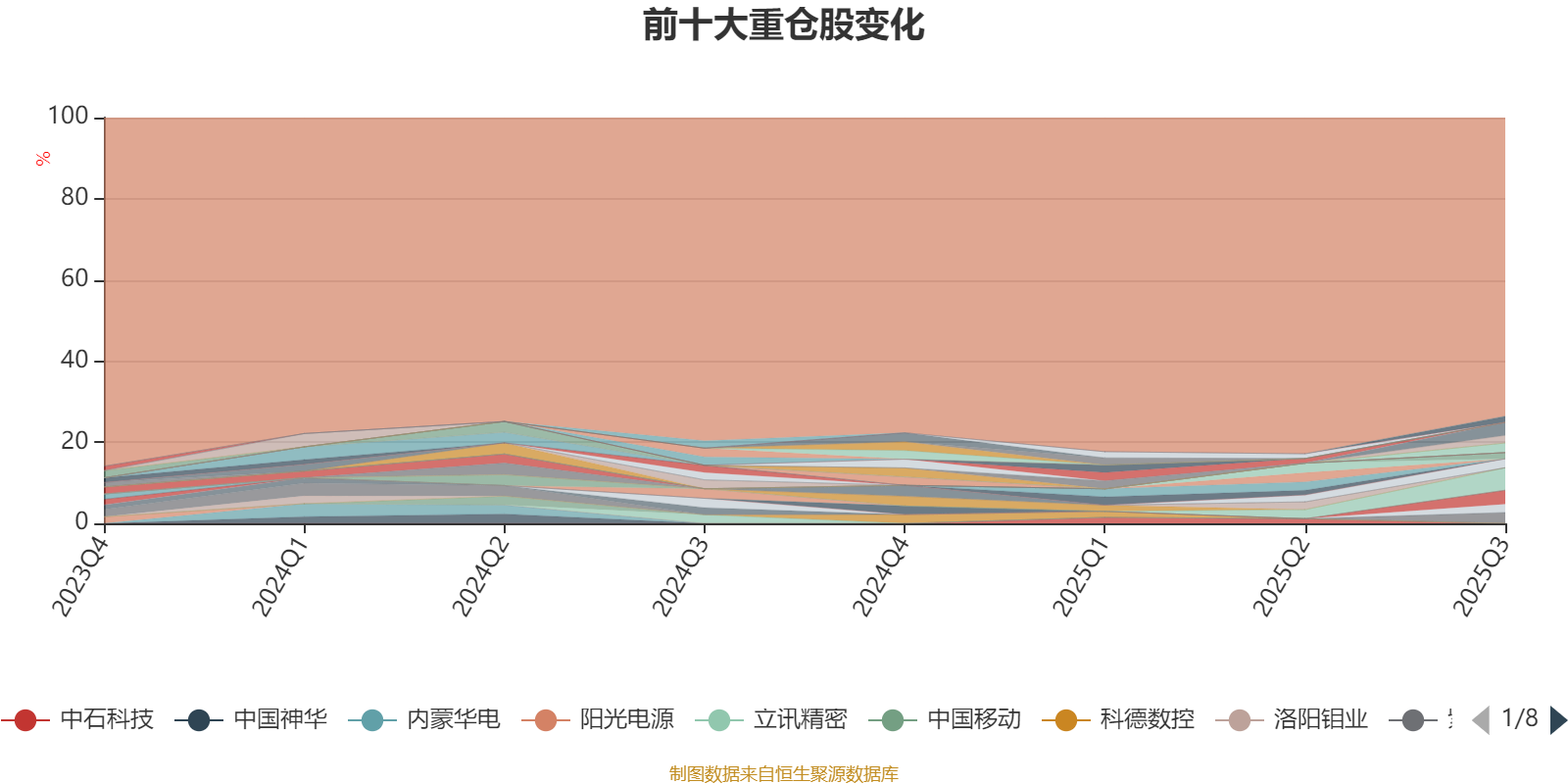 截至2025年三季度末,基金十大重仓股分别是宁德时代、贵州茅台、中国平安、紫金矿业、恒瑞医药、招商银行、美的集团、长江电力、比亚迪、煜邦电力。