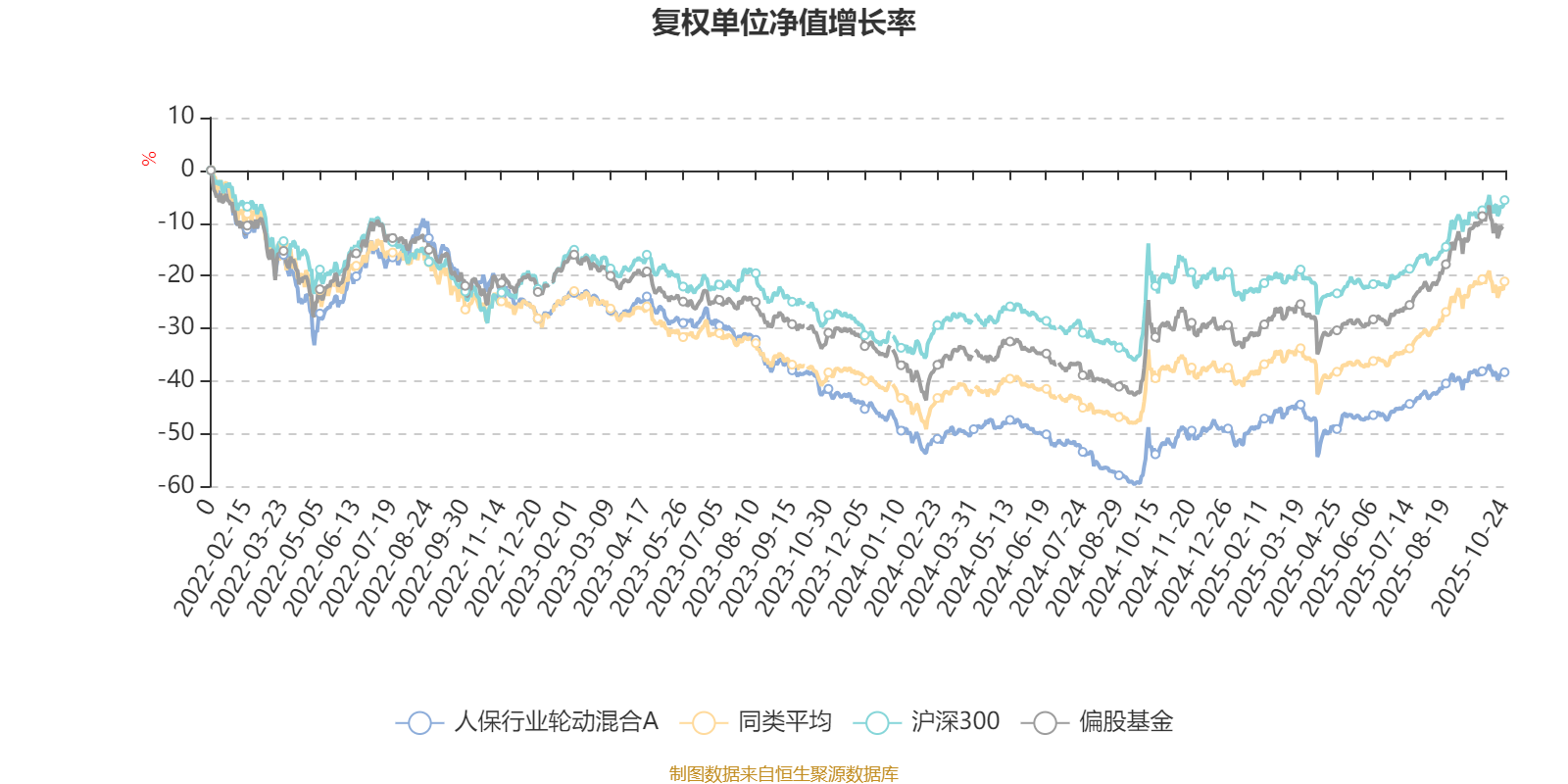 截至10月24日,人保行业轮动混合A近三个月复权单位净值增长率为7.57%,位于同类可比基金484/689;近半年复权单位净值增长率为20.91%,位于同类可比基金445/688;近一年复权单位净值增长率为28.88%,位于同类可比基金286/653;近三年复权单位净值增长率为-21.69%,位于同类可比基金334/363。