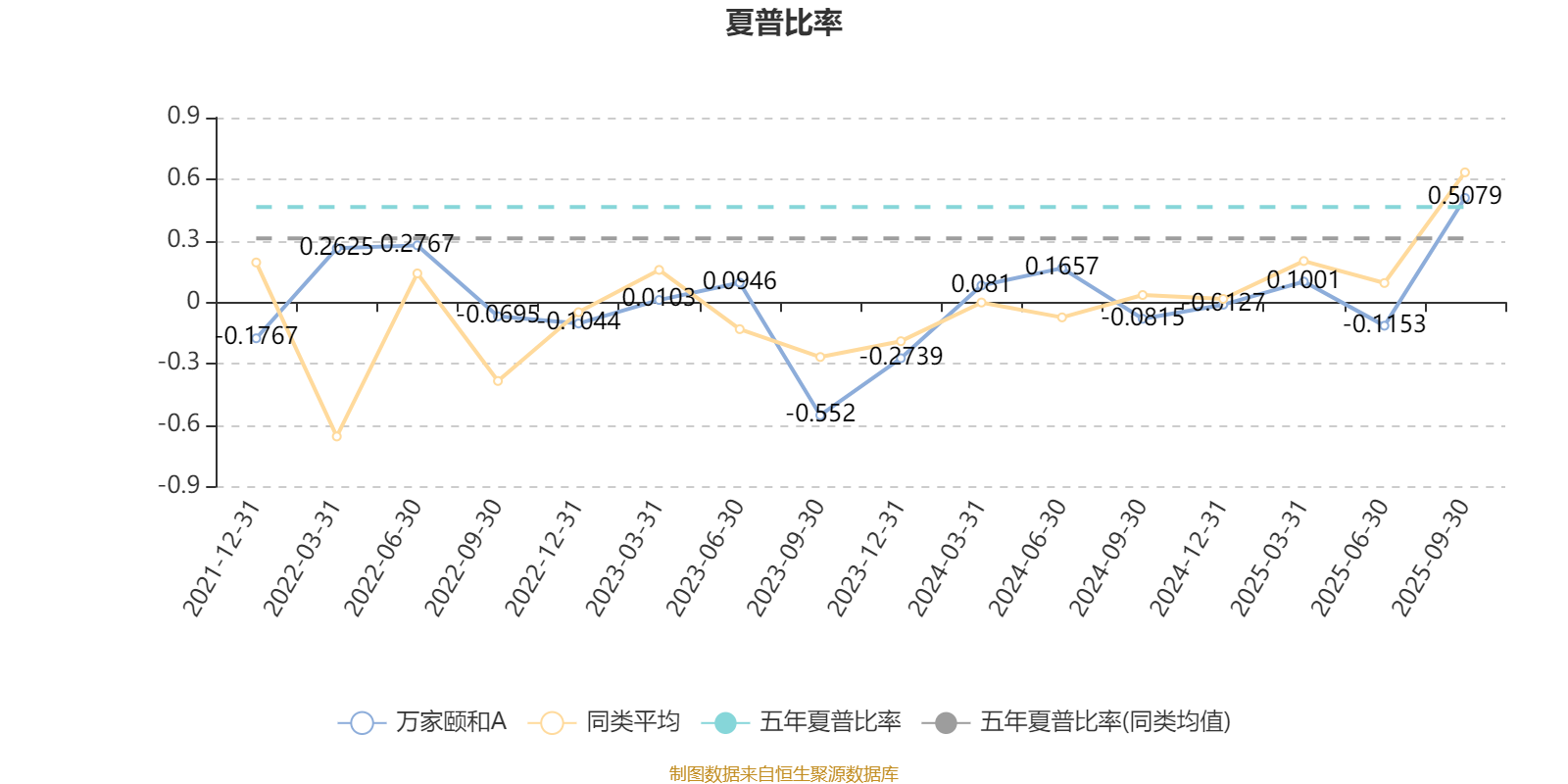 截至9月30日,基金近三年夏普比率为0.1943,位于同类可比基金1038/1285。