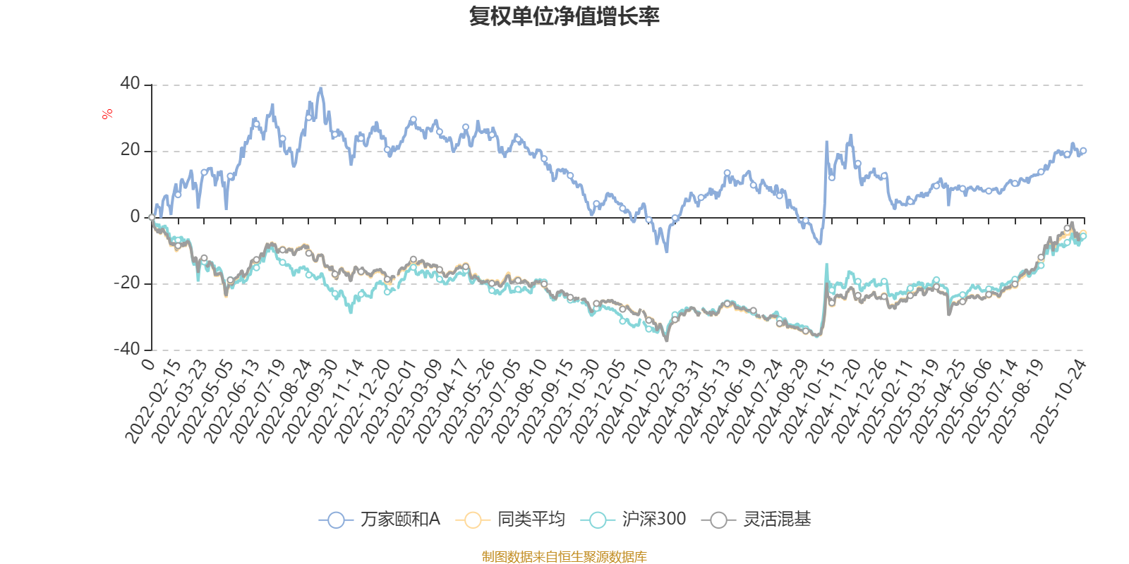 截至10月24日,万家颐和A近三个月复权单位净值增长率为7.90%,位于同类可比基金785/1287;近半年复权单位净值增长率为10.22%,位于同类可比基金1007/1287;近一年复权单位净值增长率为2.06%,位于同类可比基金1217/1287;近三年复权单位净值增长率为-1.23%,位于同类可比基金996/1286。