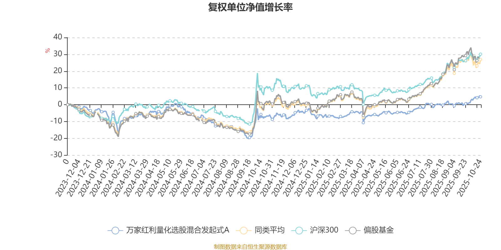 截至10月24日,万家红利量化选股混合发起式A近三个月复权单位净值增长率为3.80%,位于同类可比基金575/689;近半年复权单位净值增长率为11.14%,位于同类可比基金617/688;近一年复权单位净值增长率为12.35%,位于同类可比基金546/653。