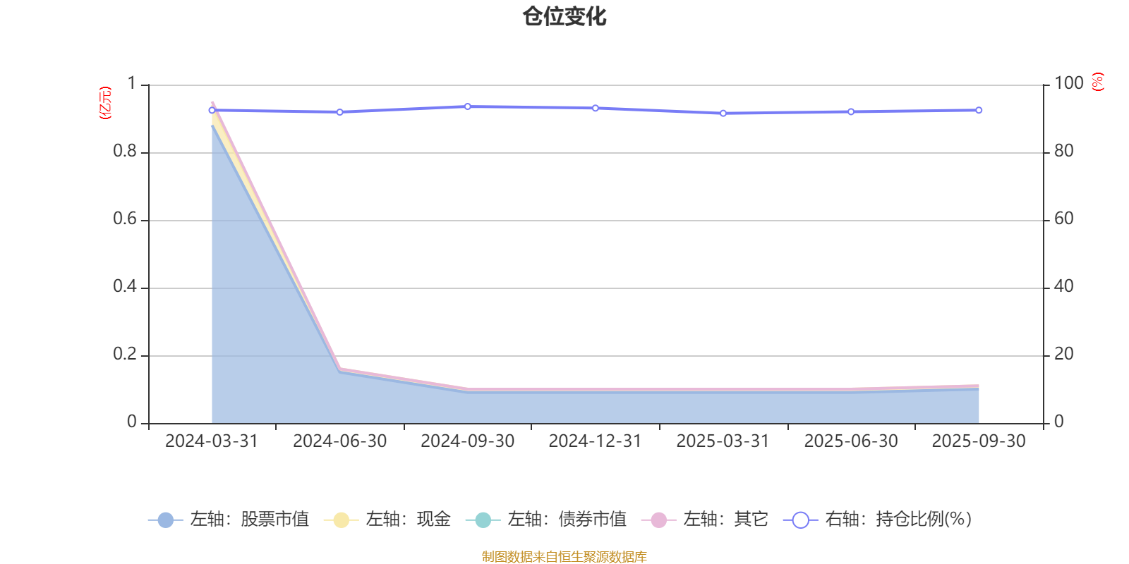 据定期报告数据统计,基金股票仓位长期保持较高水平,成立以来平均股票仓位为92.41%,同类平均为83.41%。2024年三季度末基金达到93.54%的最高仓位,2025年一季度末最低,为91.53%。