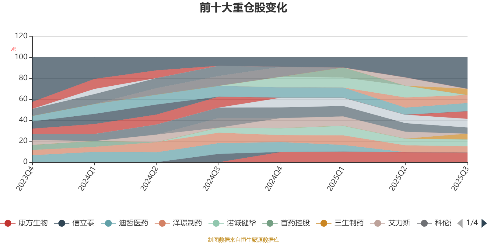 该基金持股集中度较高。截至2025年三季度末,基金十大重仓股分别是康方生物、科伦博泰生物-B、百利天恒、信达生物、福瑞股份、诺诚健华、泽璟制药、中国生物制药、百济神州、三生制药。